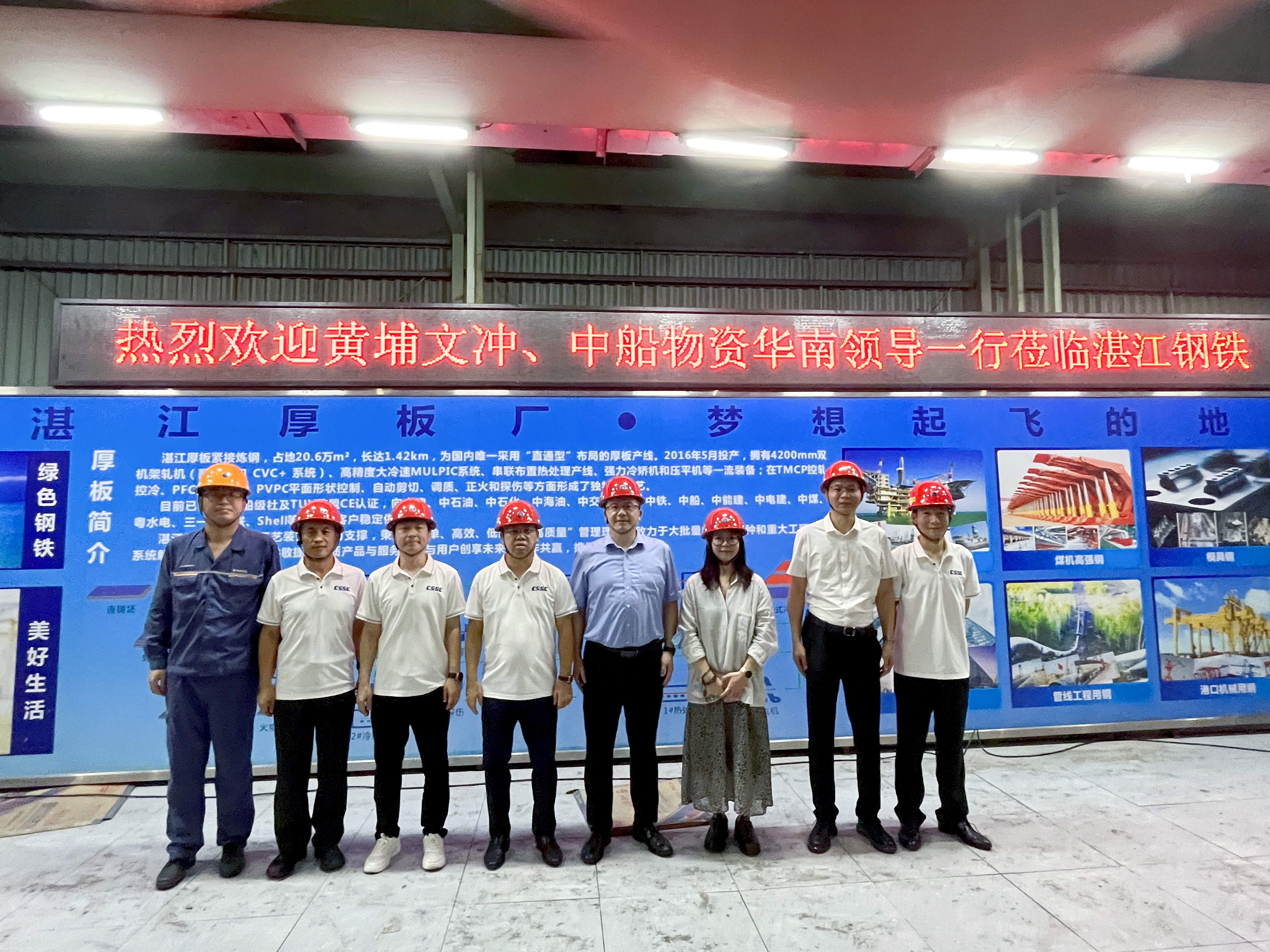 2025年7月23日,中国船舶工业物资华南有限公司副总经理赖炳胜率业务团队,会同黄埔文冲船厂物资部门,赴宝钢湛江基地交流。宝钢湛江基地中厚板厂厂长何筠热情接待。